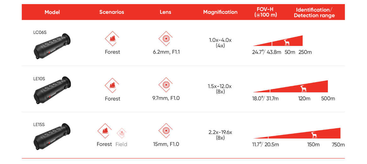 - Detektor termiczny 160 × 120 px — wysoka czułość i wyraźny obraz w ciemności.