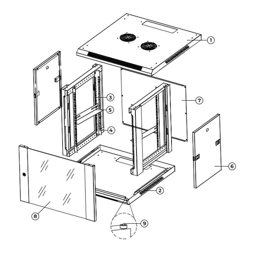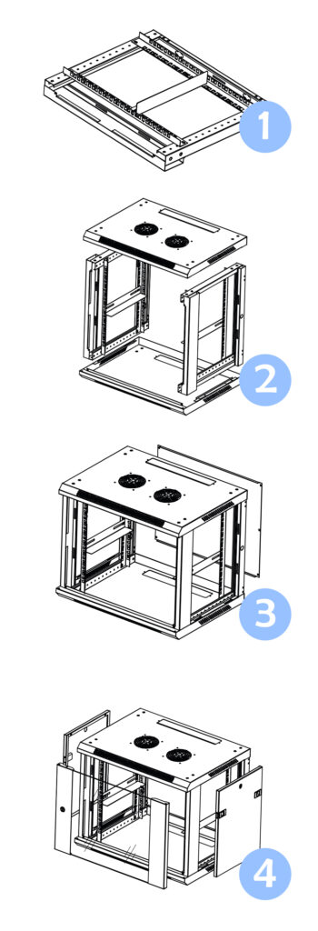 • Panel tylny ściągany + ścianki boczne zatrzaskowe – szybki dostęp podczas montażu i serwisu.